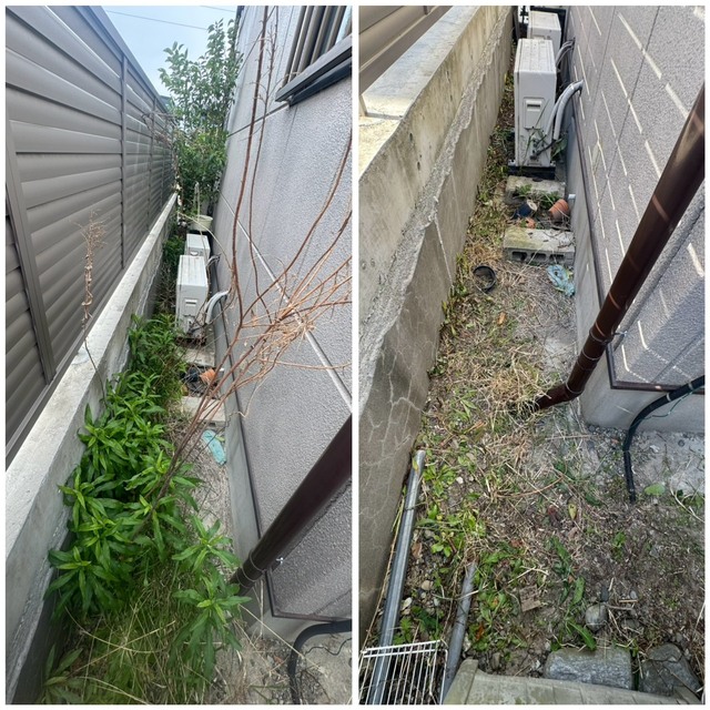 草刈り・除草剤散布は、見た目の美しさを保つだけでなく、害虫の発生予防や、建物まわりの湿気・カビ対策にもつながる大切なメンテナンスです。雑草が茂ると、虫や小動物が住み着きやすくなるほか、湿気がこもりやすくなり、建物の基礎や外壁にも影響を与えることがあります。定期的な管理によって、こうしたリスクを未然に防ぐことができます。